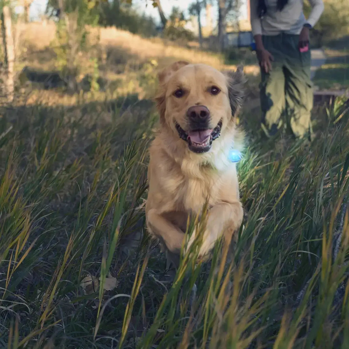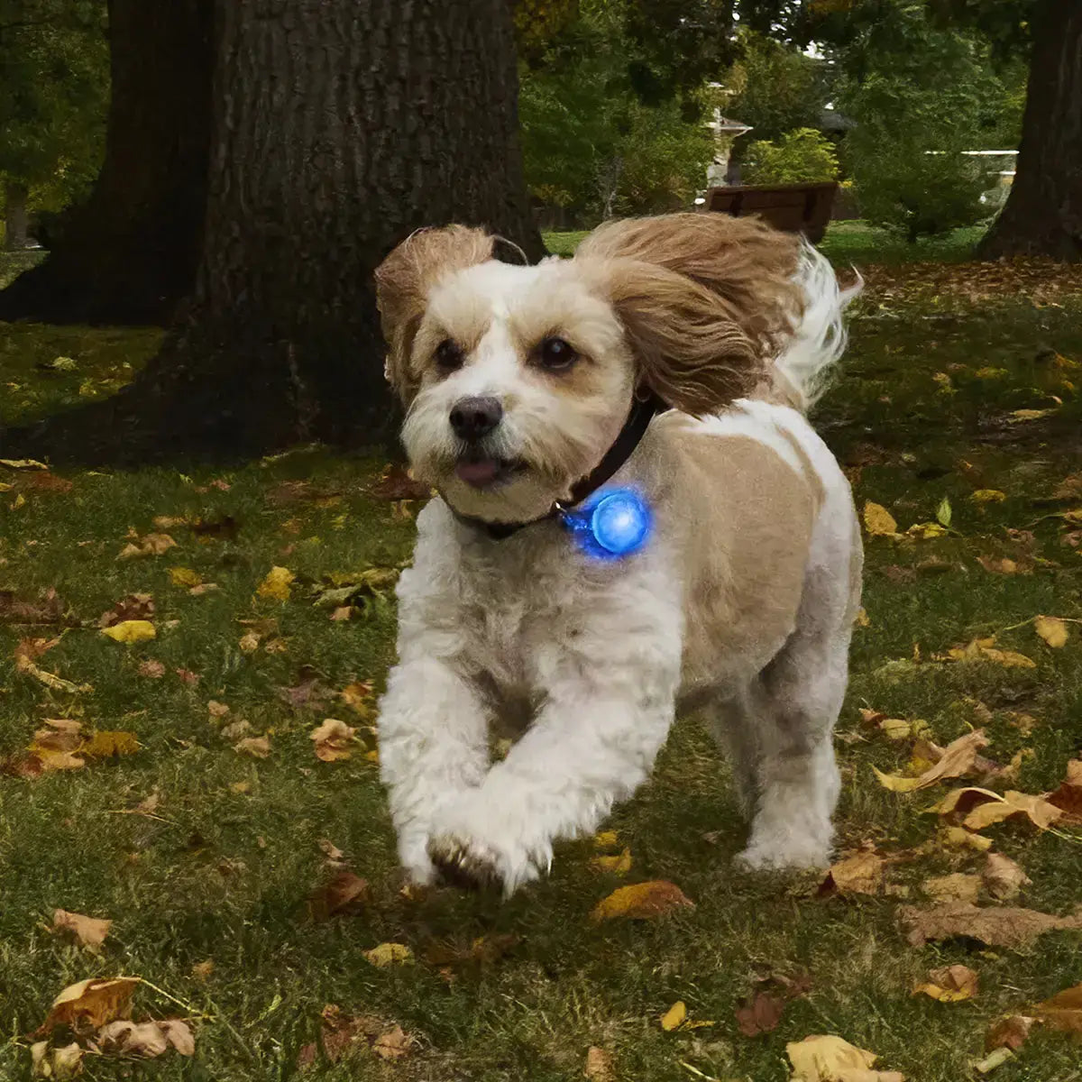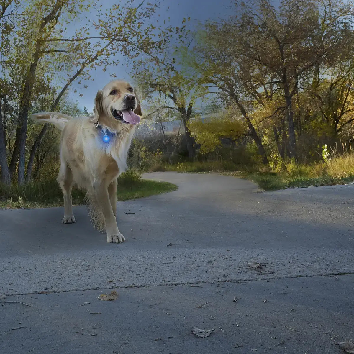 • Rechargeable LED dog collar light for night walks and low-light safety