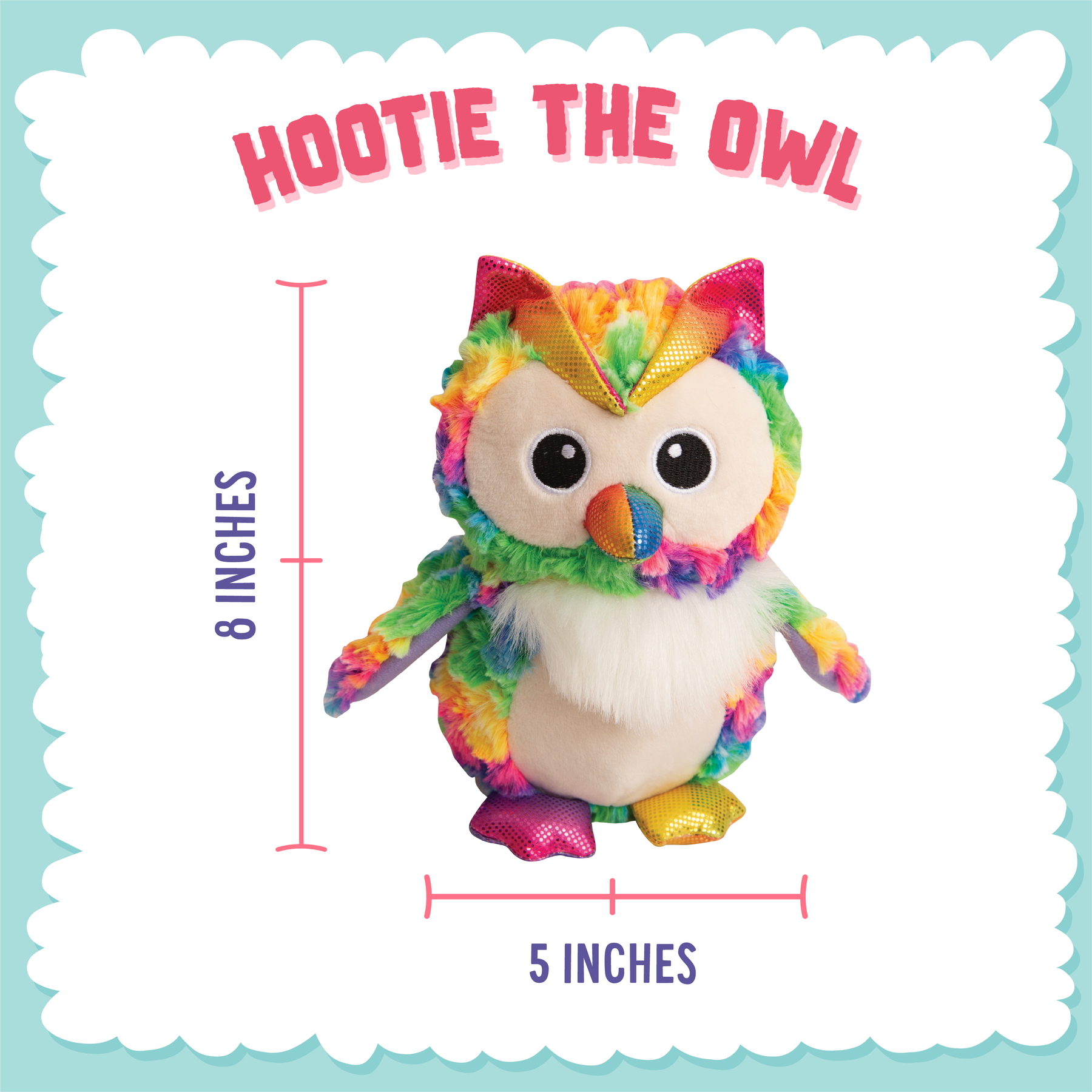 8" length; ideal plush dog toy for medium dogs
