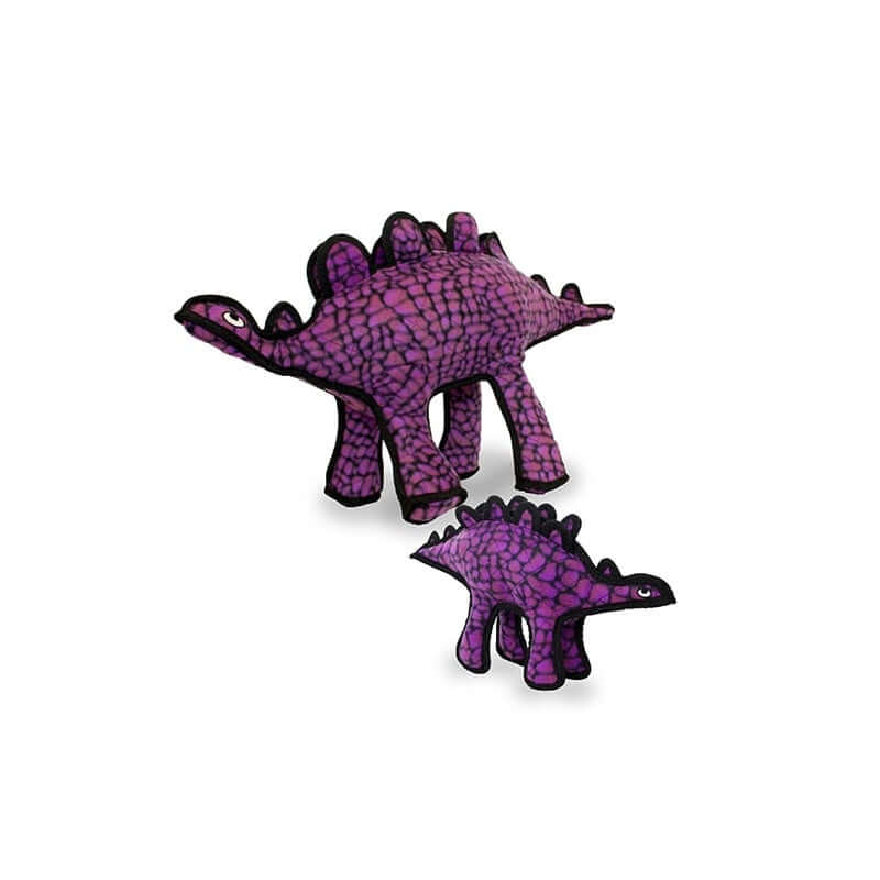 Tuffy® Dinosaur Stegosaurus - Great for interactive play with one or multiple dogs. This extremely, durable dog toy is great for playing tug or fetch! Soft edges won't hurt gums. Machine washable (air dry) and it floats!
